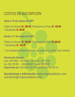 Copyright ® 2006 -2007. Se autoriza su reproducción total o parcial siempre y cuando se den los créditos respectivos al autor y se coloquen enlaces activos a la fuente. http://www.elpiscoesdelperu.com